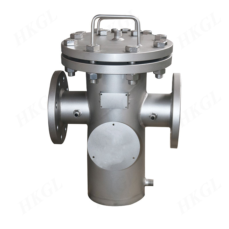 篮式过滤器主要由接管、主管、滤篮、法兰、法兰盖及紧固件等组成。当液体通过主管进入滤篮后,固体杂质颗粒被阻挡在滤篮内,而洁净的流体通过滤篮、由过滤器出口排出。当需要清洗时,旋开主管底部螺塞,排净流体,拆卸法兰盖,清洗后重新装入即 可。因此,使用维护方便。本厂的篮式过滤器可以根据客户的实际使用情况进行设计。