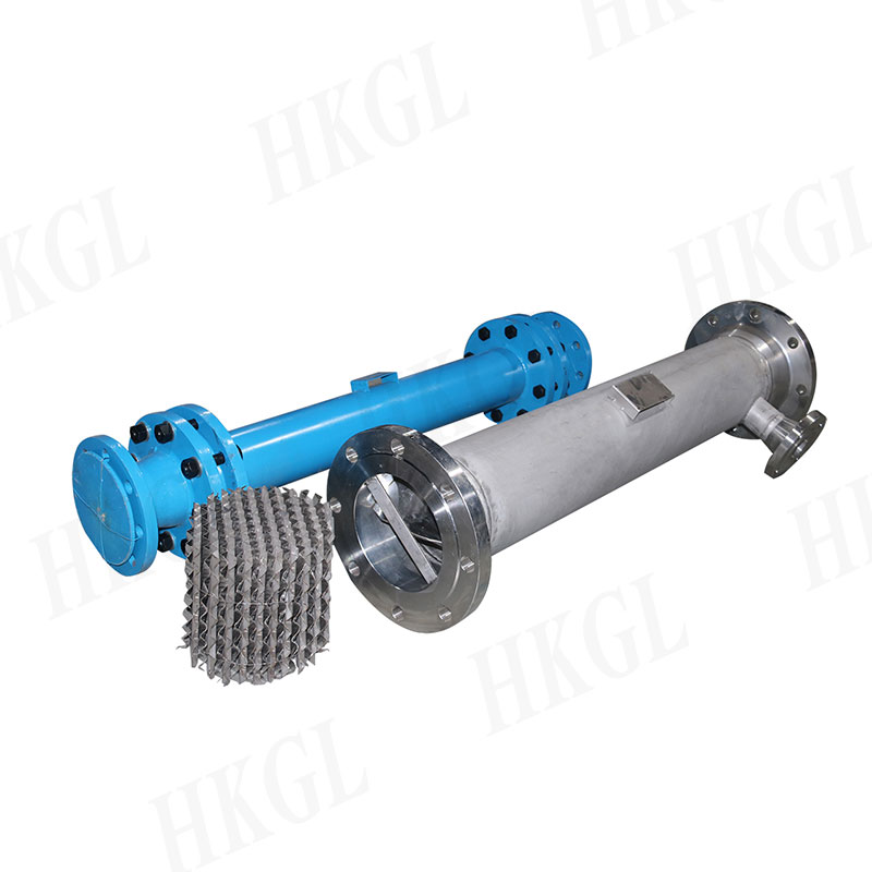 HK-SK静态混合器单元由单孔道左右按角度旋转组焊而成,安装入管时相邻的螺旋片分别右旋。SK型混合器不容易堵塞,适合于粘度较大的物料,处理量大。分化过程时能使液滴分散到10um。